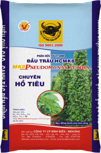 Ứng dụng kết quả nghiên cứu này, Công ty Cổ phần Bình Điền- Mekong đã đưa loài vi khuẩn Pseudomonas putida phối trộn trong loại phân hữu cơ vi sinh Đầu Trâu HCMK8. Chất hữu cơ trong phân bón có tác dụng bào vệ, duy trì sức sống cho vi khuẩn. Phân Đầu Trâu HCMK8 là loại phân đặc hiệu dùng bón cho hồ tiêu ngoài tác dụng như các phân hữu cơ sinh học khác, do có vi khuẩn đối kháng P.putida nên phân Đầu Trâu HCMK8 còn có thể hạn chế sự phát triển của nấm Phytophthora. Sử dụng phân Đầu Trâu HCMK8 được coi là một giải pháp mới góp phần hạn chế hiệu quả bệnh chết nhanh hồ tiêu. Bón cho sầu riêng và cây có múi phân cũng có tác dụng hạn chế bệnh nứt thân xì mủ do nấm Phytophthora. Thường xuyên bón phân Đầu Trâu HCMK8 sẽ bổ sung cho đất một khối lượng đáng kể vi sinh vật đối kháng, cải thiện tính chất và hệ sinh thái đất, tiến tới hạn chế tối đa nguồn nấm bệnh, góp phần phát triển cây hồ tiêu một cách bền vững.