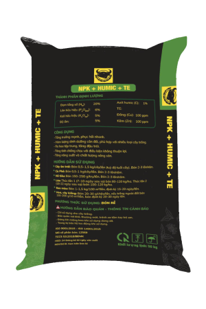 * Thành phần: Đạm tổng số (Nts): 20%; Lân hữu hiệu (P2O5hh): 6%; Kali hữu hiệu (K2Ohh): 5%; Axit humic (C):  1%; TE: Đồng (Cu): 100 ppm; Kẽm (Zn): 100 ppm; Độ ẩm: 5%.